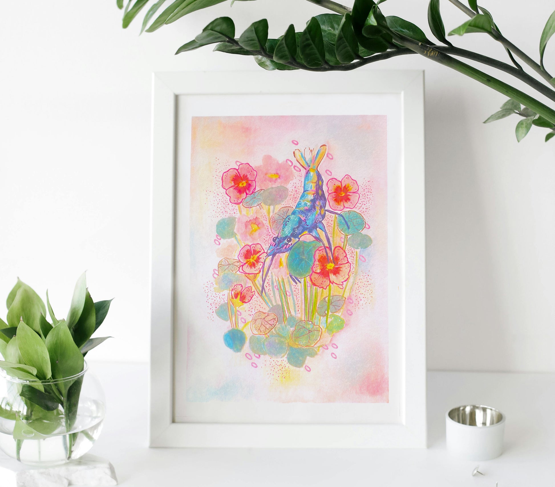 ✿ Painted traditionally with watercolor, edited digitally and printed onto acid free, archival, 100% cotton 300gsm paper using Japanese printing technique RISO. RISO uses soy based inks which allows for super vibrant and textured results.
